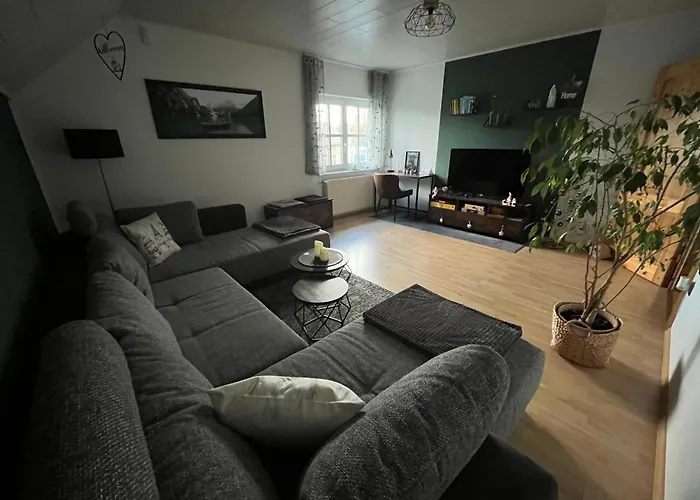 El Wohnung In Steimel está situado a 2 km de Evangelische Kirche Puderbach, y a unos 25 minutos a pie de Burg Reichenstein. Además de un restaurante y una barbería, este apartamento de 85 m² ofrece vistas al jardín.